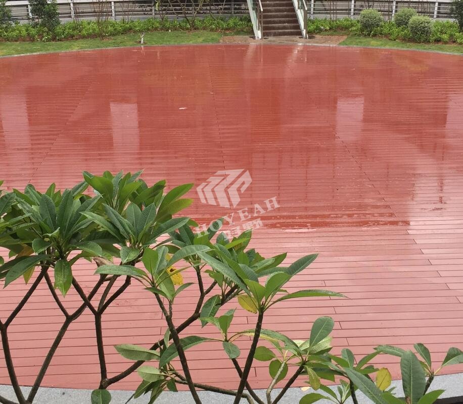 项目简介:广州萝岗创意园该项目规格:150X25MM 红木色塑木空心地板 方铁龙骨规格:40X40MM 铺装在5楼天台,起到防水、防滑、美观,休闲作息。工程面积共250平方米,2016年10月15完工!